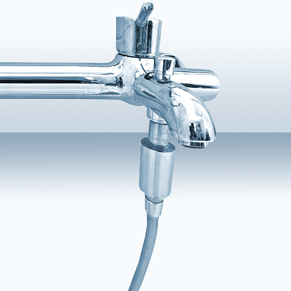 Das OPTILeMO-Modul wird in der Badewanne an die Armatur und in der Dusche zwischen Armatur und Brauseschlauch montiert.
